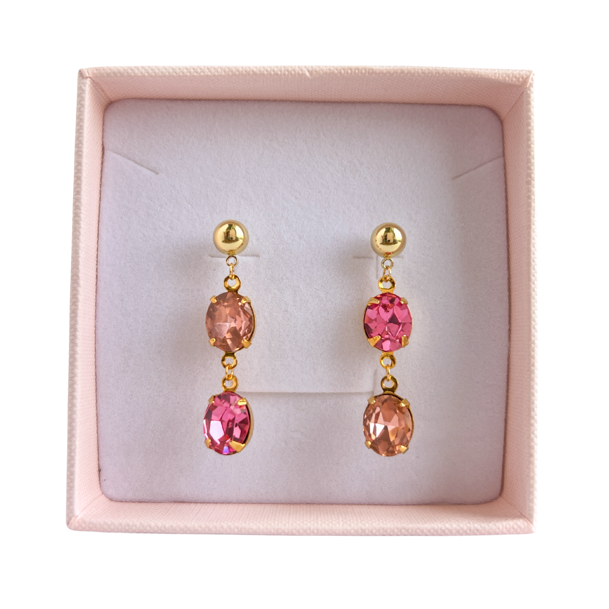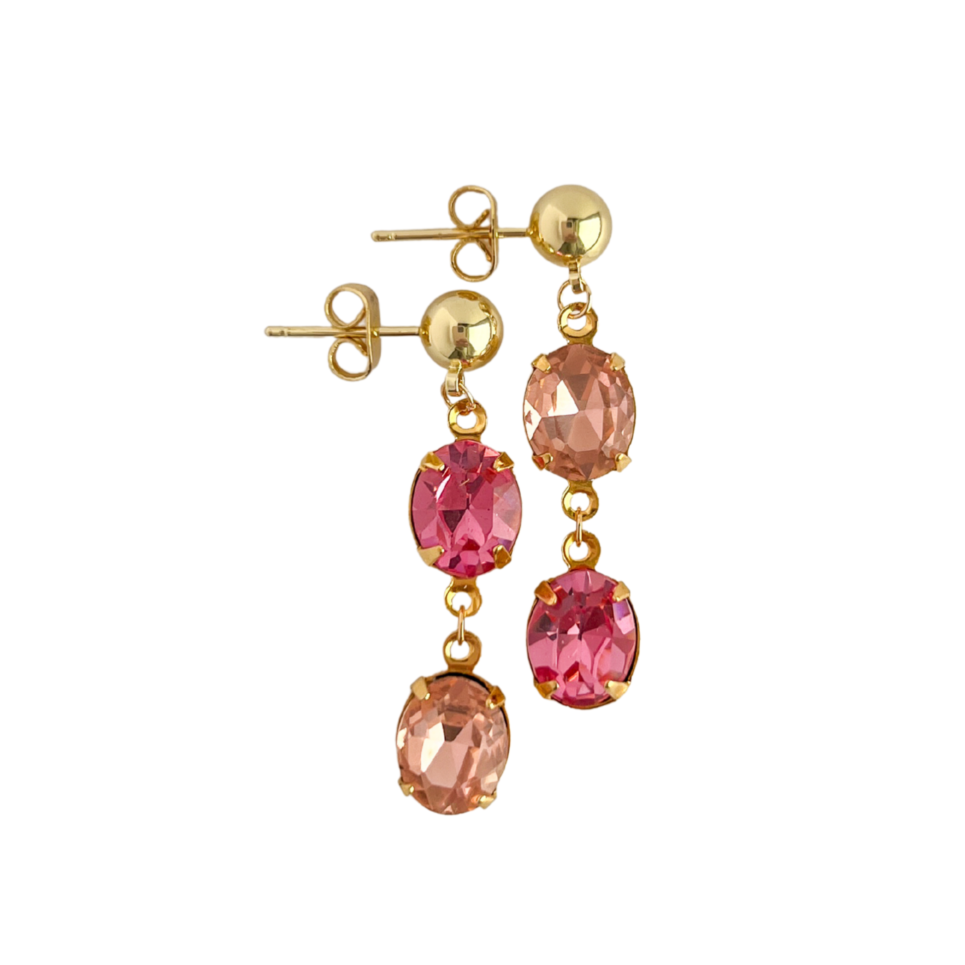 - Vintage Rose Pink Swarovski Gemstones in Gold-Plated Brass Settings