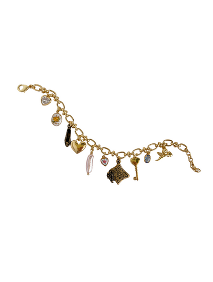 - Assorted 18K Gold-Plated Brass Charms, Vintage Shabby Chic Floral Enamel Heart, Lilac Biwa Stick Pearl, Antiqued Pewter Ballet Slipper & Seeds Charm