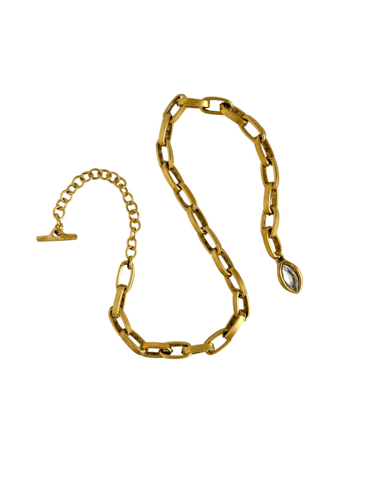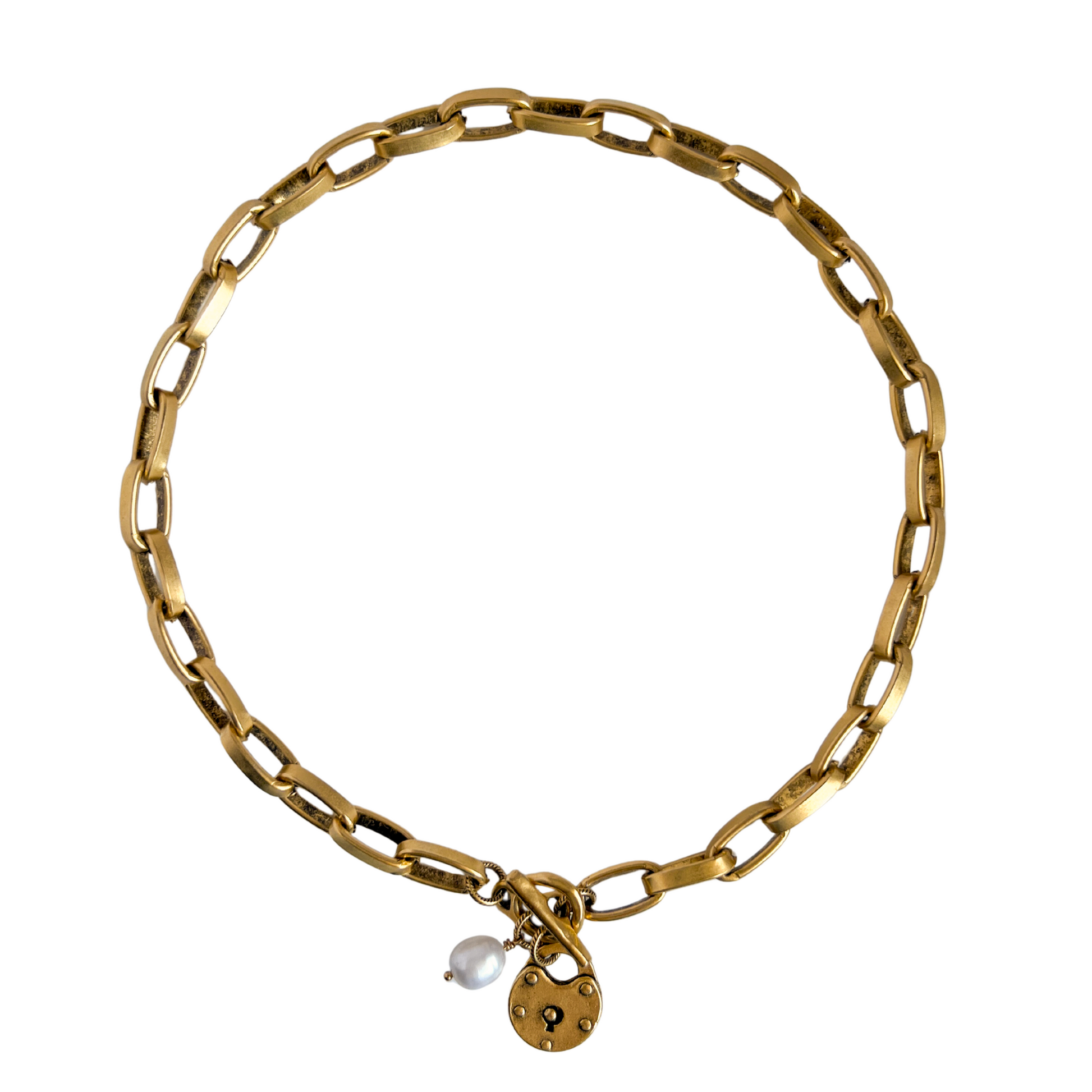 - 12K Steel Chain, Toggle Clasp & Lock Charm