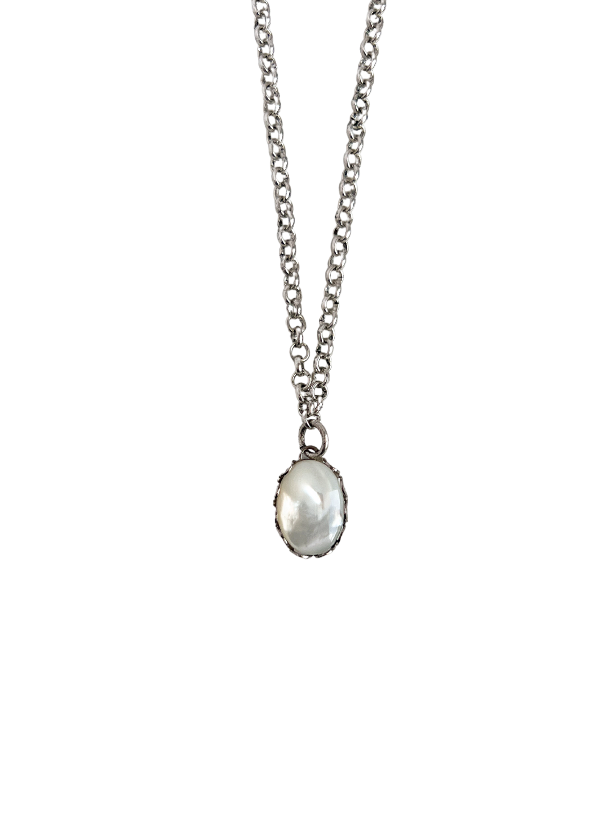 - Vintage Mother of Pearl Pendant in Silver-Plated Brass Setting
