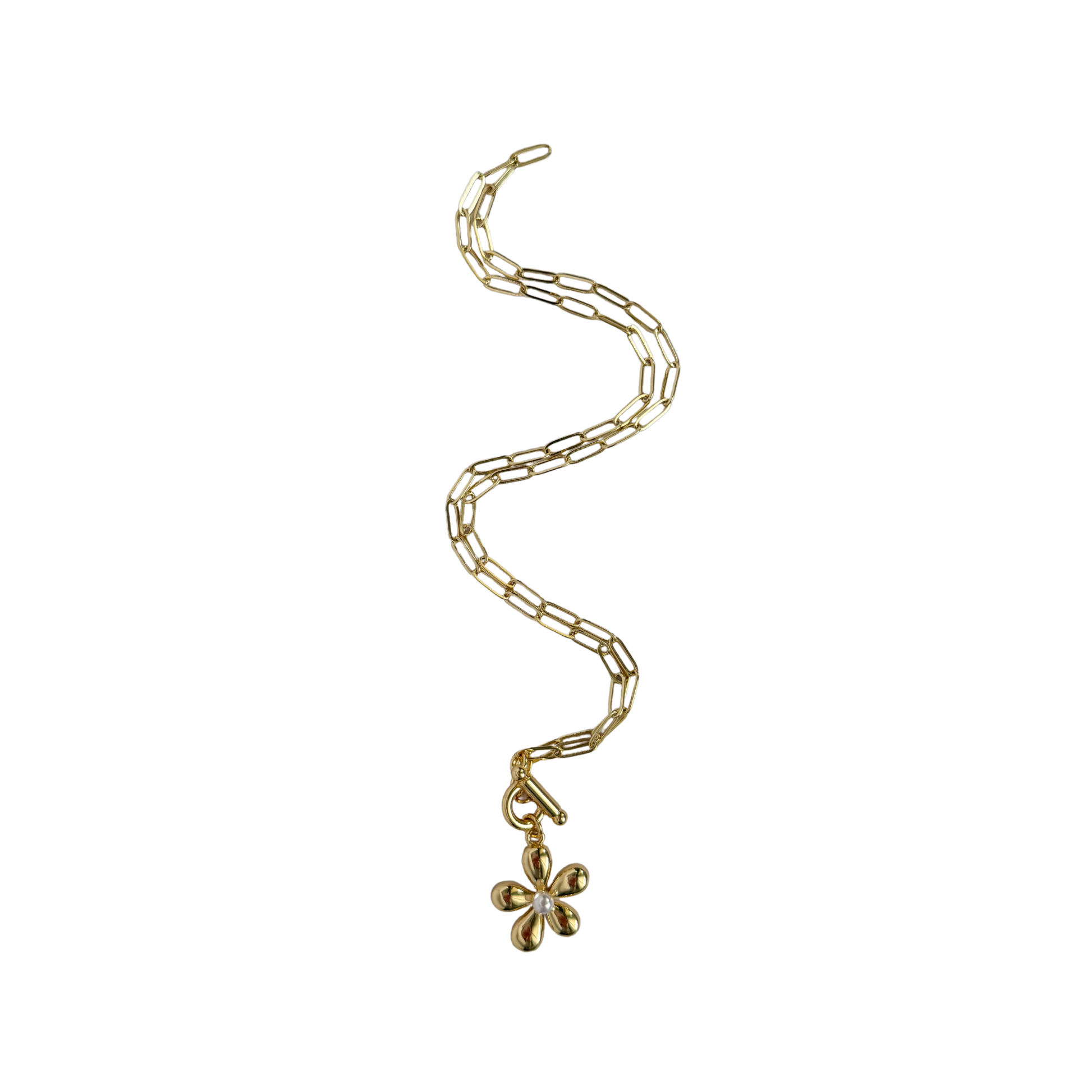 A dainty paperclip chain featuring a delicate gold flower with a luminous pearl center — simple, feminine, and easy to layer.